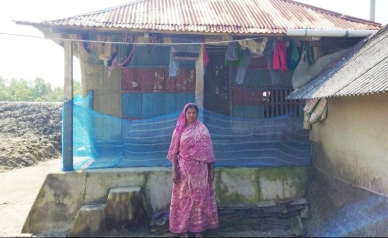 Cyclone “Sitrang” lashed Bangladesh on 24 October 2022 evening. After hearing the cyclone signal, Anjali Rani brought her father-in-law and her son to a cyclone shelter, 5 km far from their residence, along necessary documents like, national identity cards, CSO’s saving books, some dry food, fire box, candles and essentials living. But she stayed at home alone so that the house would not be theft by miscreants.