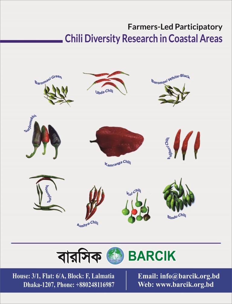 PosterChili diversity research February 17, 2025 Bangladesh Resource Center for Indigenous Knowledge This reaserch depicts the diversity of native chili in the research areas. Facebook Twitter LinkedIn WhatsApp Messenger Email Print PrevPreviousFarmer Swapan’s Agroecological Learning Center NextConservation, Revival and Sustainable Use of Crop Genetic ResourcesNextPartners More Posts A small initiative that built big confidence among schoolgirls Agroecological practices bring new life to Coastal Family Climate change leads to climate crisis test video When recognition heals wounds… Netrokona farmer fights to save disappearing seeds_The Climate Watch World Wetlands Day Observed by BARCIK Rajshahi Resource Centre. World Fishing Cat Day observed by BARCIK Netrokana Resource Centre. Report on Present energy use by urban poor and challenges for adoption of Renewable Energy in Bangladesh Two local news paper covered BARCIK and Green Coalitions training sessions. Send Us A Message Full Name Phone Email Message Send Stay Connected Facebook Linkedin Youtube Instagram X-twitter Related Publications A small initiative that built big confidence among schoolgirls March 5, 2026 Agroecological practices bring new life to Coastal Family March 2, 2026 Climate change leads to climate crisis March 1, 2026 test video March 1, 2026 When recognition heals wounds… February 24, 2026 Netrokona farmer fights to save disappearing seeds_The Climate Watch February 22, 2026 World Wetlands Day Observed by BARCIK Rajshahi Resource Centre. February 3, 2026 World Fishing Cat Day observed by BARCIK Netrokana Resource Centre. February 2, 2026 Report on Present energy use by urban poor and challenges for adoption of Renewable Energy in Bangladesh January 20, 2026 Two local news paper covered BARCIK and Green Coalitions training sessions. January 19, 2026 BARCIK received Agro Award from Channel I and Standaed Chartered bank was covered by both The Daily Star and Prothom Alo January 8, 2026 Agroecology is a climate solution January 8, 2026