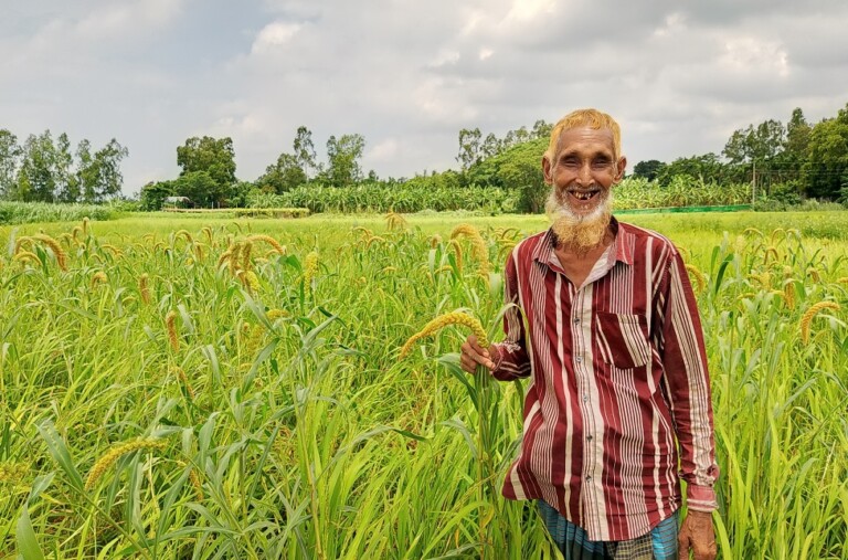 Abdur Razzak Bepari, a 68-year-old farmer from Algirchar village at Ramkrishnapur union, Harirampur upazila of Manikganj, has been cultivating kaun for 12 years. He conserves the seeds for planting. He grows kaun and parangi rice on the same land ensuring that he maximizes the use of his lands.
