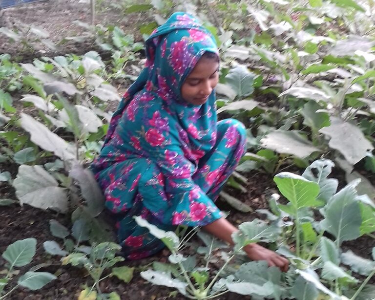 Today including successfully farming vegetable and spinaches in an environment friendly way Muslima Khatun continues to raise goats, ducks, chickens and pigeons one by one.  She is now able to support her family and buy necessary things for her family members with her income. Now she believes and has the confidence that one can change their life and livelihood status if sincerely substantial initiative is taken. She also believes that an enterprising woman can become a faithful partner in a family. She said, ‘both men and women need to do something to improve a world.’ ‘But the most important thing is to have an attitude get involved in income generating activities with different initiatives. Because development is never possible without substantial initiatives’-she added.