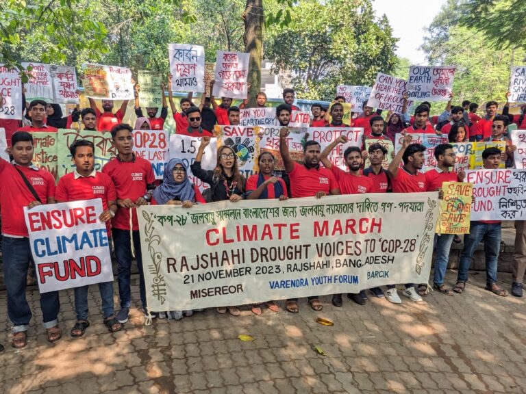 The participants in the Climate March held today in Rajshahi city demanded drought fund and climate justice to the rich countries in the upcoming Climate Change Conference (COP-28) to be held in Dubai, UAE. Â At the same time, they also urged to reduce the use of fossil fuel to control the global warming. The participants made these demands in a Climate March held at Saheb Bazar Zero Point in Rajshahi today (November 21, 2023) organized by BARCIK and Barendra Youth Forum.