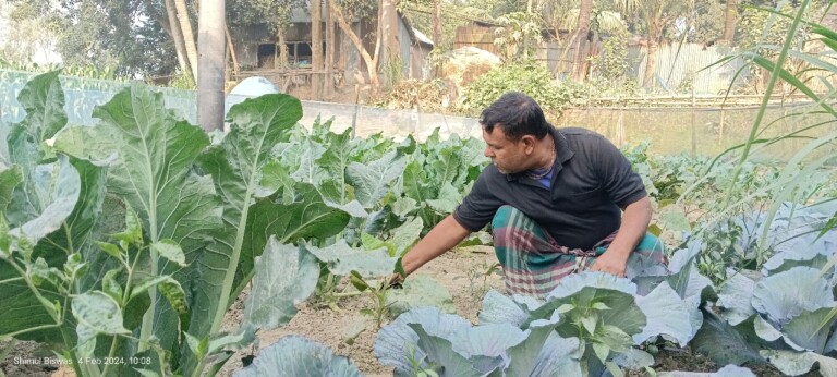 Farmer Swapan Roy’s house at Kasta village, Singair upazila of Manikganj district, has become a renowned destination for local farmers who seek to learn about agroecology. Swapan Roy, a 48-year-old farmer, lives with his wife and son in a small, prosperous family. Agriculture is their sole source of income, and Swapan has skillfully managed his 30 decimal homestead and additional cultivable land to ensure year-round crop diversity, sustaining his family’s livelihood.