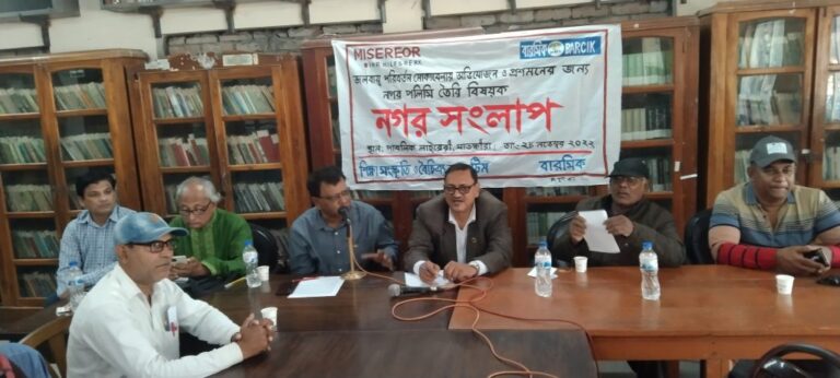 An urban dialogue was held in Satkhira to demand policy formulation for adaptation and mitigation to address the impacts of climate change. The dialogue was organized by the Education Culture and Diversity Protection Team of Satkhira and BARCIK in Public Library on 28 November, 2022.
