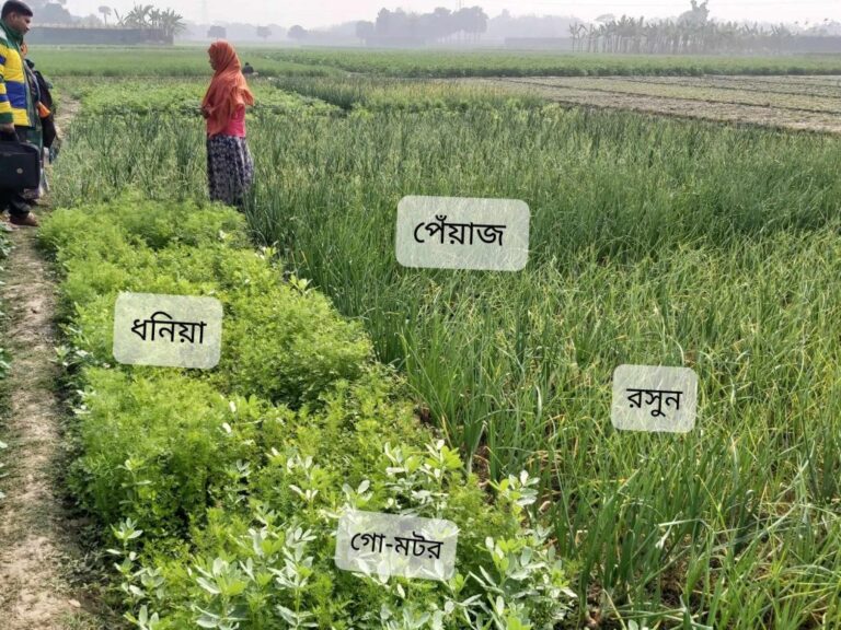 Among those small initiatives taken by farmers being facilitated by BARCIK include the initiatives of farming community of Chhota-Amgachi village of Paba upazila of Rajshahi district. 4 years back Amagachi women development organization with its 40 members directly involved in agriculture by practicing sustainable agriculture where they use local seed varieties and conserve those seeds as well as exchange with other farmers. The members of this organization received facilitating, information and materials supports from BARCIK such as seeds and these supports the members of the organization farm various native crops and fruits in their villages. They cultivate potatoes, onion, garlic, as well as almost extinct varieties such as cow-peas, honey bees and turnips. They also grow other spices and pulses including more varieties of crops which meet their family needs for consumption through the year. They also exchange crops and seeds to other farmers and people in their village with the objective to involve and connect these people with such works on promoting agroecological practices.