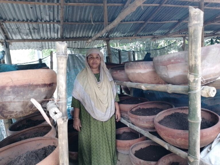 Today she is wellknown among the farmers. However, seeing her initiatives people in the neighborhood also get interested in making vermin compost. She also highlighted the importance of earthworm compost and advised them to use it. Thus, today the interest of people in the area is increasing and the demand for earthworm compost made by Bilkis Begum is also increasing. She said, ‘I started selling compost fertilizer at the rate of 13-15 taka per kg. After a few days, when the quantity of earthworms increased, I started selling earthworms at the rate of Tk 700-800 per mound. Being involved in producing and marketing the vermin compost has enabled me to wipe out my hardship’.