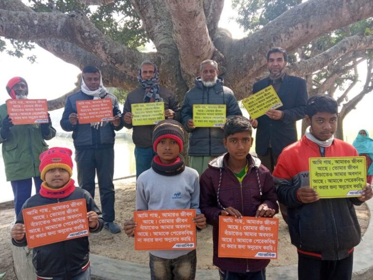 Nonetheless, in order to create awareness among the mass people about the importance of trees as well as to stop nailing on trees a campaign was recently organized at Chapra and Lalpur villages of Tanor upazila of Rajshahi. Headmaster and teaching staff of Lalpur High School and community of Chapra village and Ward Councilor No. 3 of Tanor Municipality, teachers and staff of BARCIK were present on the occasion. At the awareness campaigns speakers urged the mass people to protect trees and not nail anything on the trees. They also focused on planting trees and asked the mass people not to torn leaves of trees without any reason.